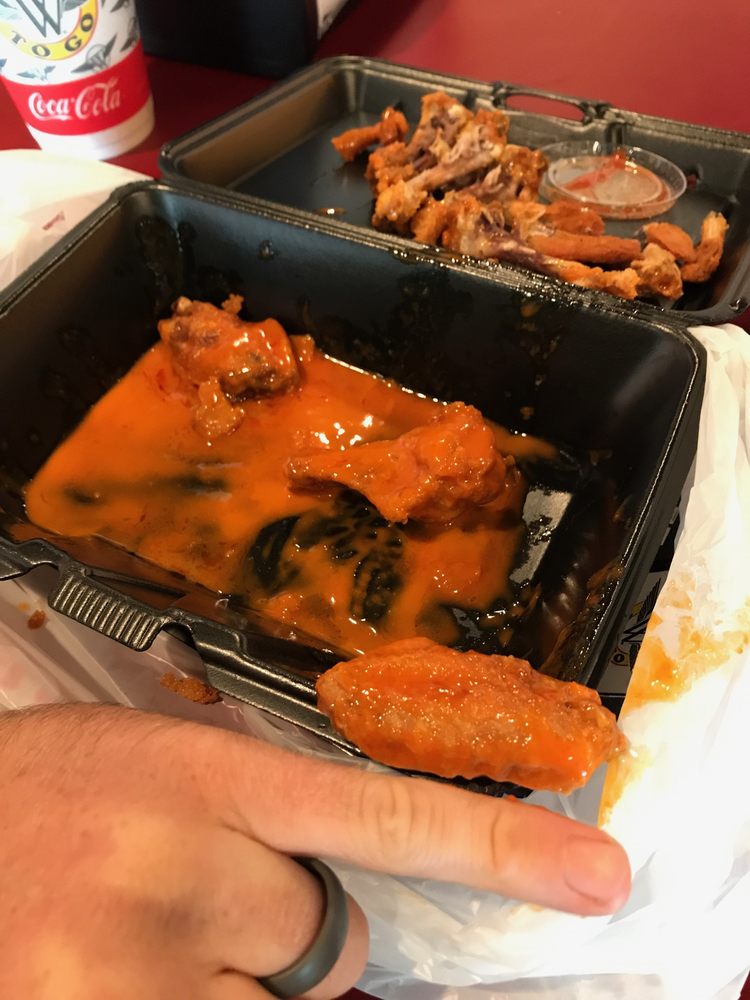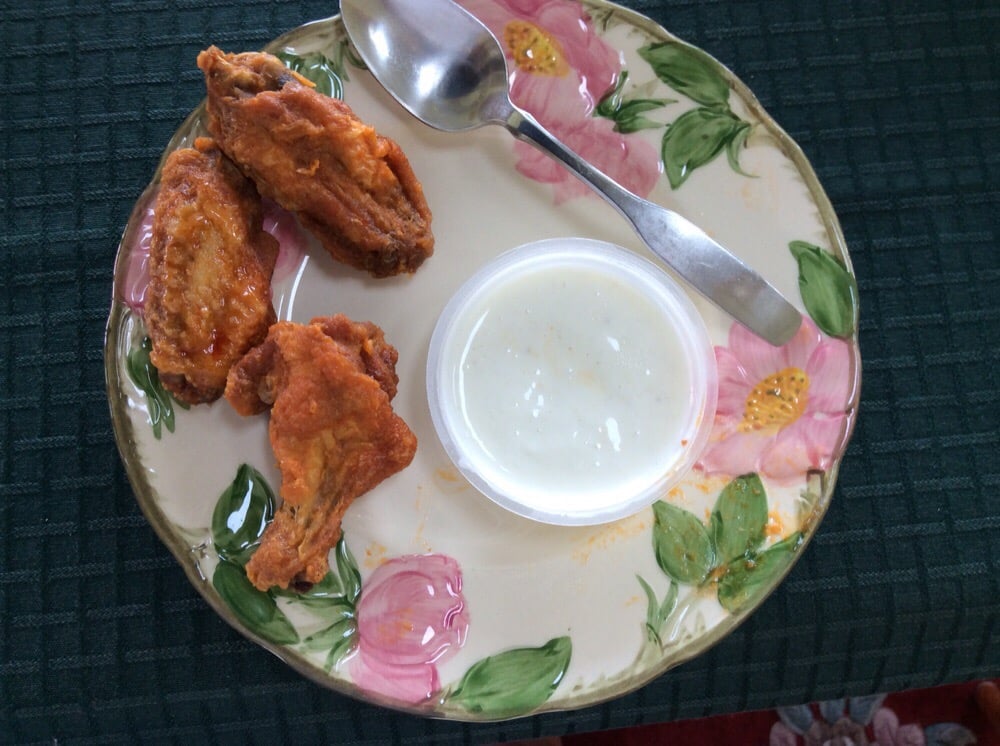 Fresh chicken, cheese, tomatoes, WTG hot sauce, and bleu cheese. 1103 calories.